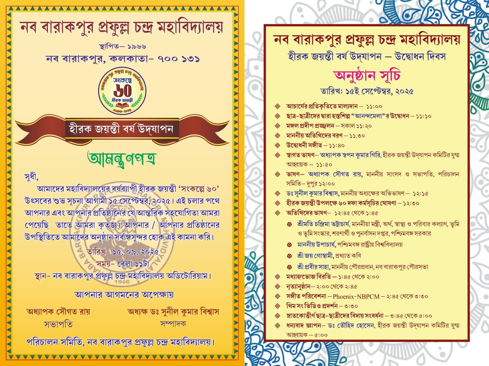 On 16th September 1966, a degree college was established exclusively for Commerce discipline to run in the evening shift, named after the great scientist and philosopher Acharya Prafulla Chandra Roy, perhaps as a logical conclusion following the first instance of naming the local day college after him. The college started its journey as a Co-educational Evening college with Pre-University as well as B.Com (Genl.) Course affiliated to the University of Calcutta. To meet the prolonged students’ demand, this college had been rechristened as “Naba Barrackpur Prafulla chandra Mahavidyalaya” in 2005 which obtained extension of affiliation of four …